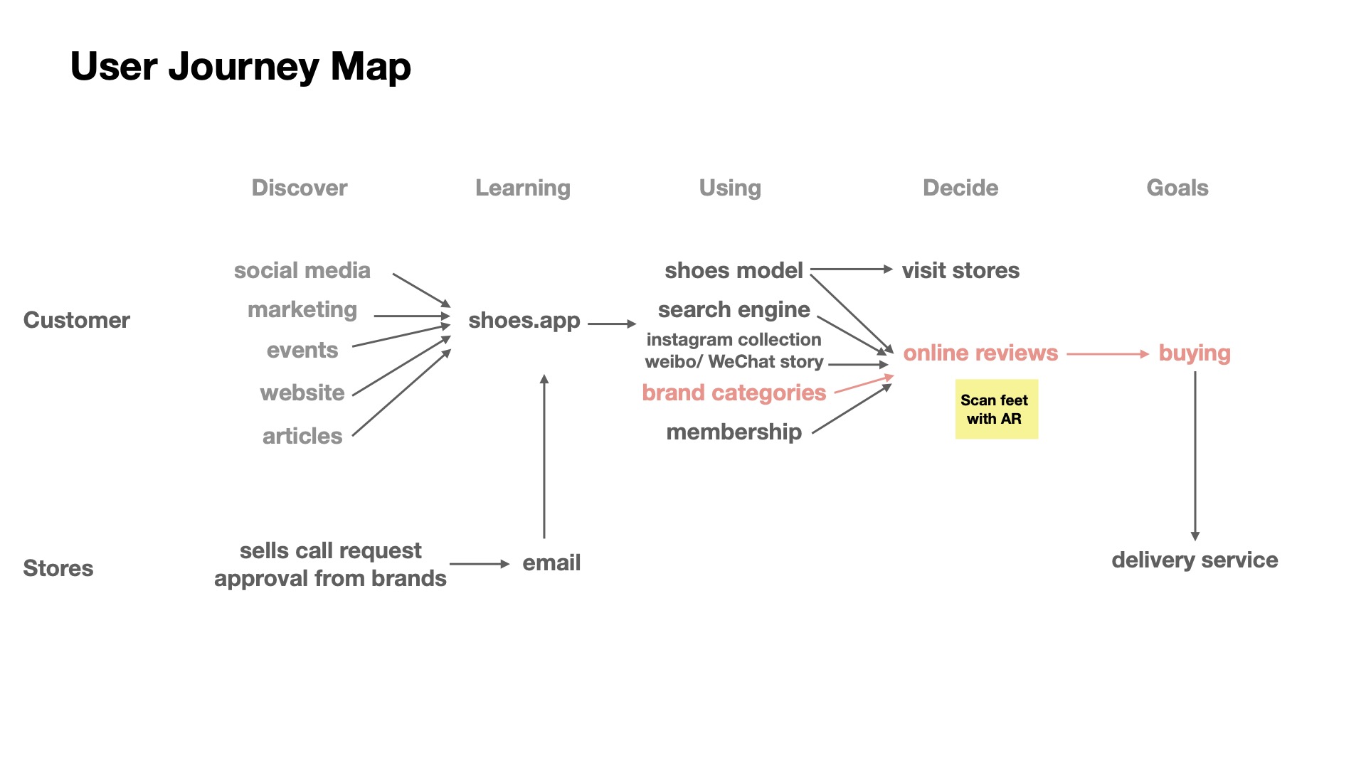Design an experience that allows customers to select and buy shoes digitally hassle-free, choosing from a variety of brands.